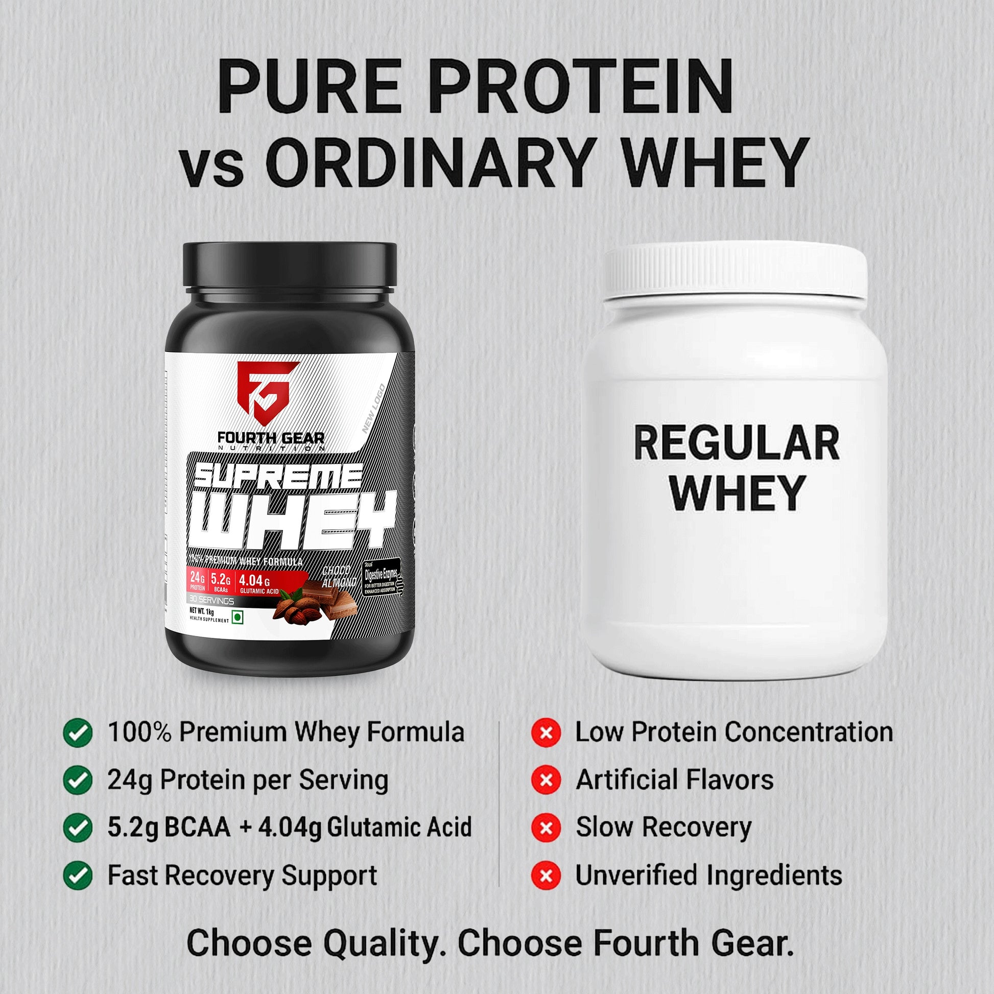 Compared to other options in the market, our 1kg whey protein offers top-tier quality and affordability. If you’re comparing the whey protein powder 1kg price, you’ll find Supreme Whey gives unmatched value with no compromise on quality.